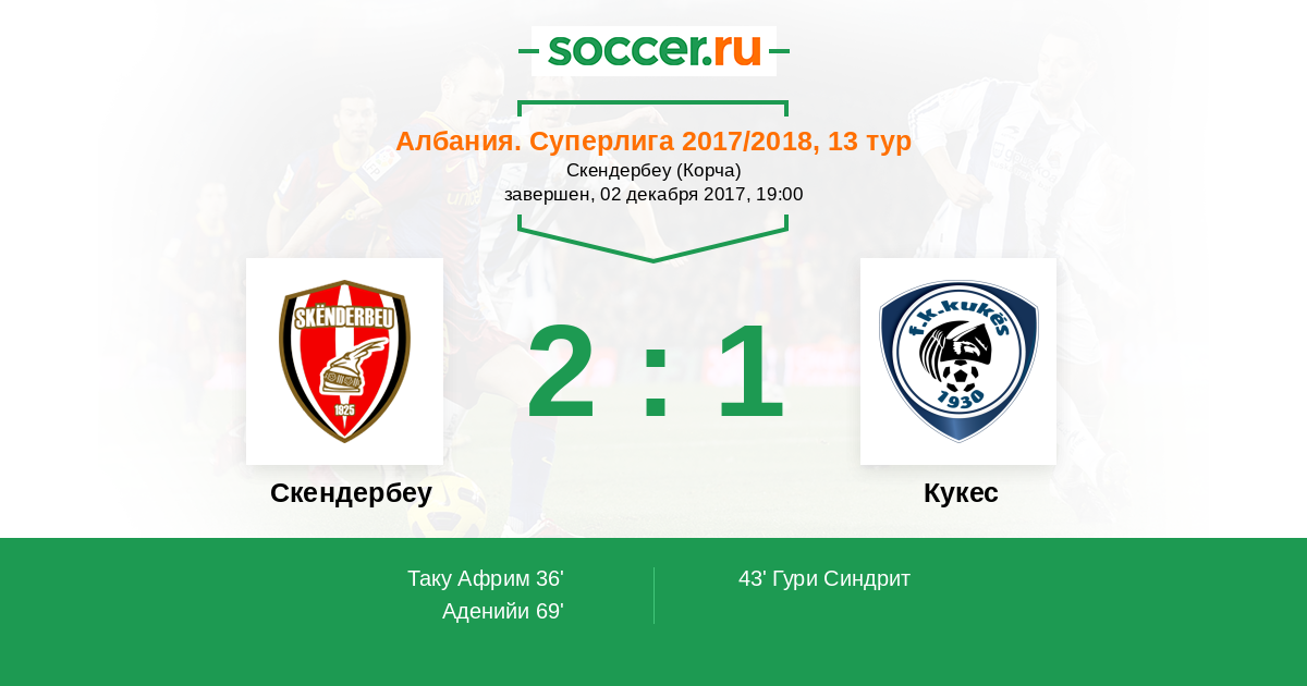 Протокол матча Скендербеу против Кукес