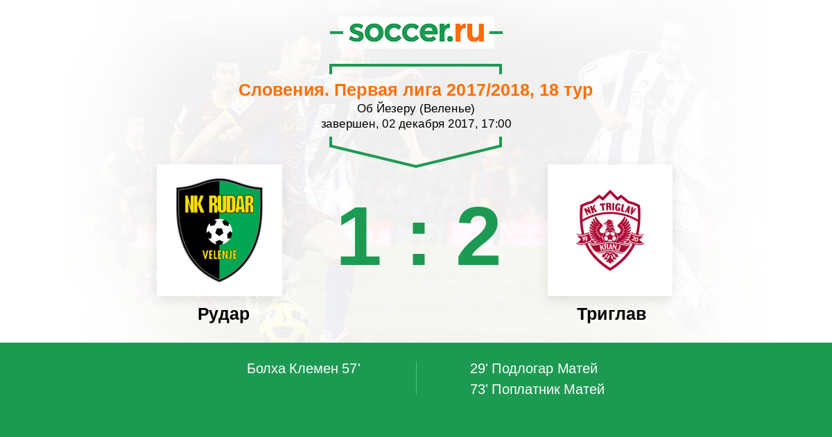 29' (0:1) Подлогар Матей (9)
