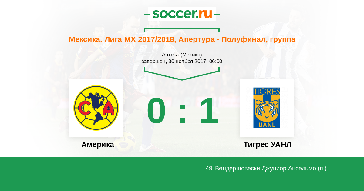 Протокол матча Америка против Тигрес УАНЛ