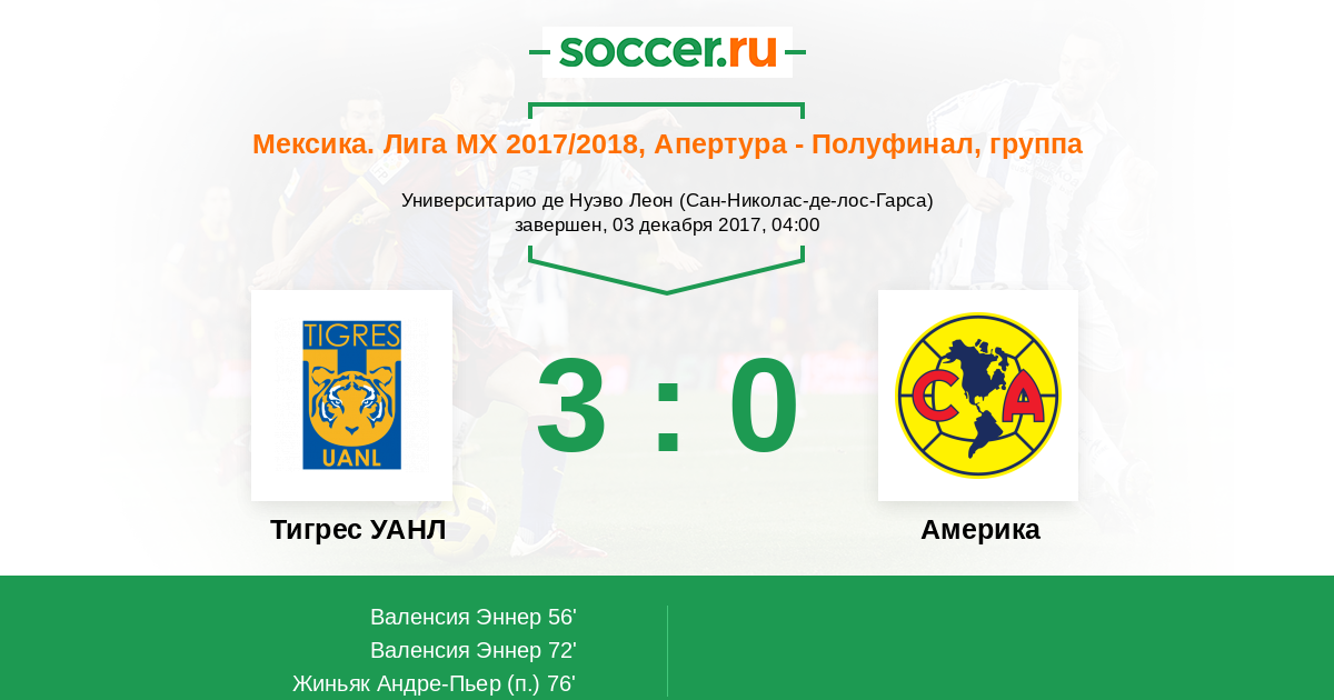 Протокол матча Тигрес УАНЛ против Америка