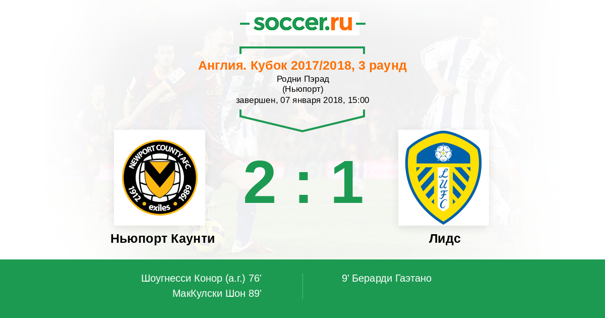Протокол матча Ньюпорт Каунти против Лидс