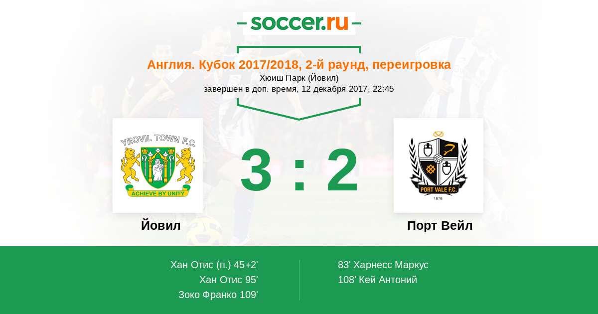 Протокол матча Йовил против Порт Вейл