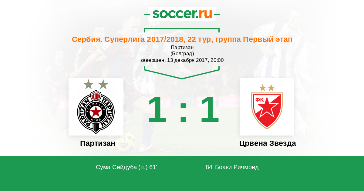 Протокол матча Партизан против Црвена Звезда