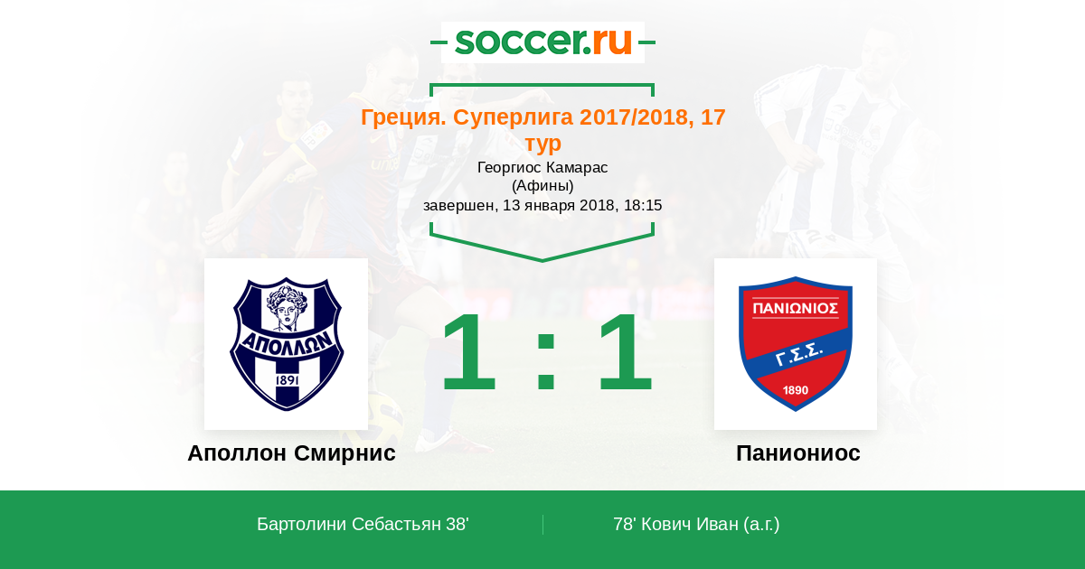 Протокол матча Аполлон Смирнис против Паниониос