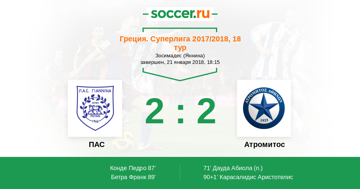 Протокол матча ПАС против Атромитос