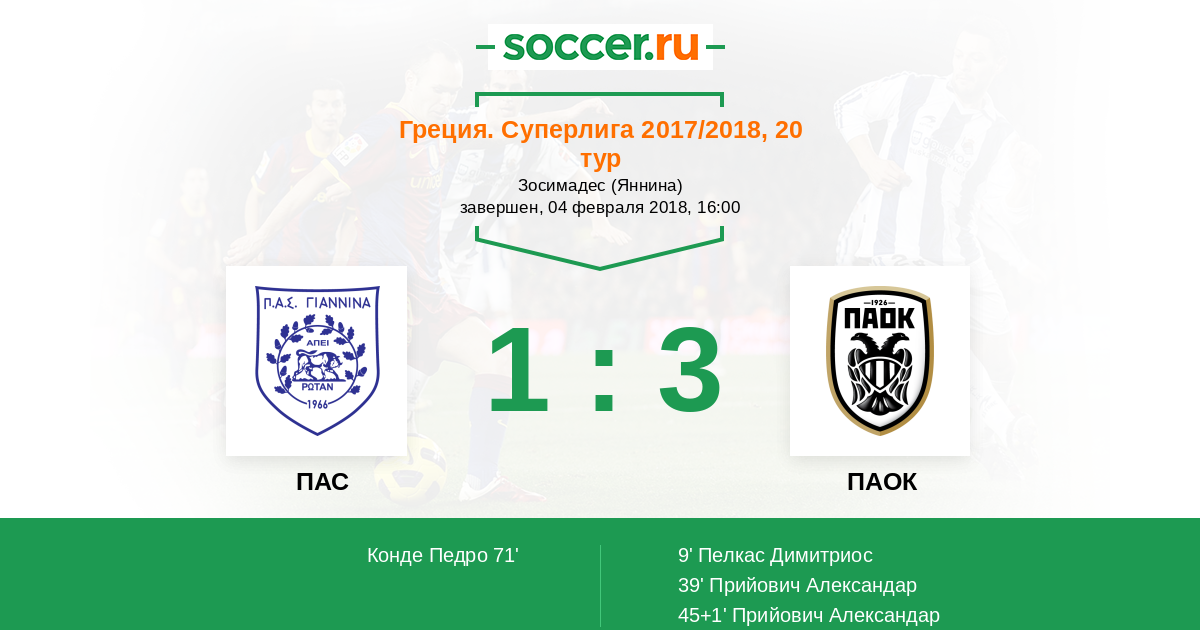 Протокол матча ПАС против ПАОК