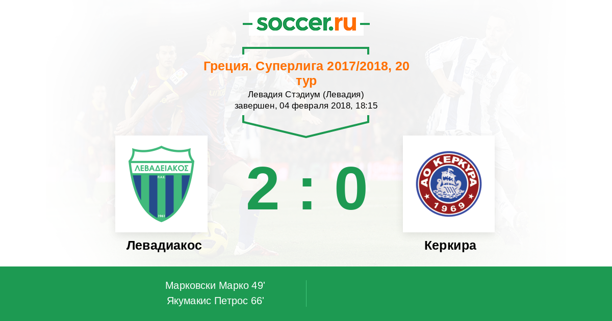 Протокол матча Левадиакос против Керкира