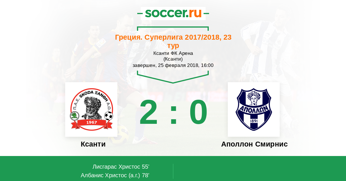 Протокол матча Ксанти против Аполлон Смирнис