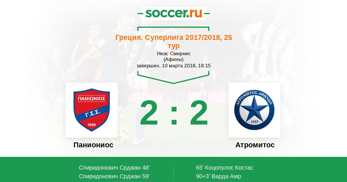59' (2:0) Спиридонович Срджан (10) (Влахос Валентинос (37))