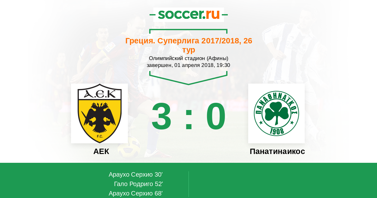 Протокол матча АЕК против Панатинаикос