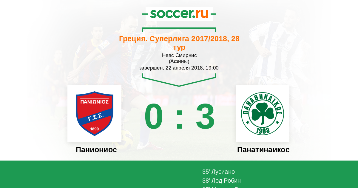 Протокол матча Паниониос против Панатинаикос