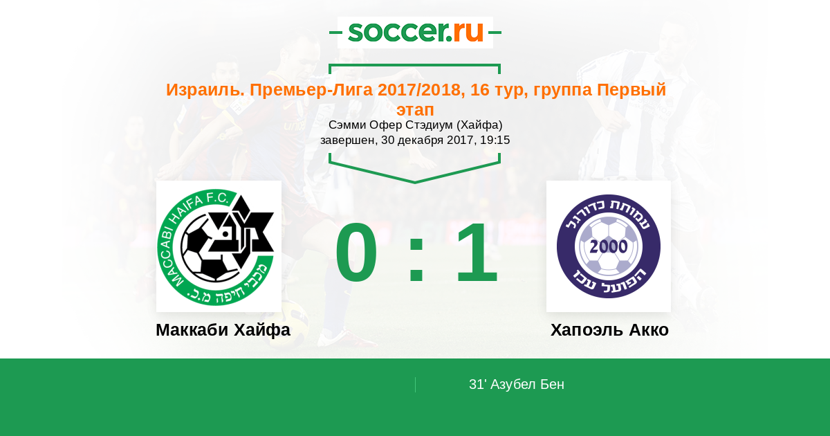 Протокол матча Маккаби Хайфа против Хапоэль Акко