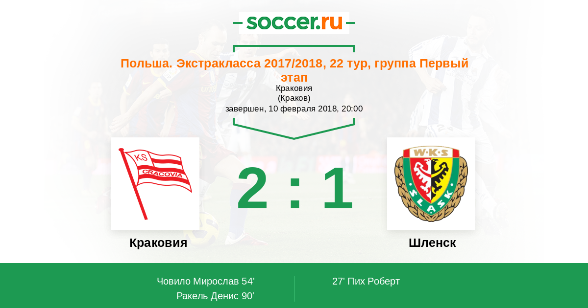 Протокол матча Краковия против Шленск
