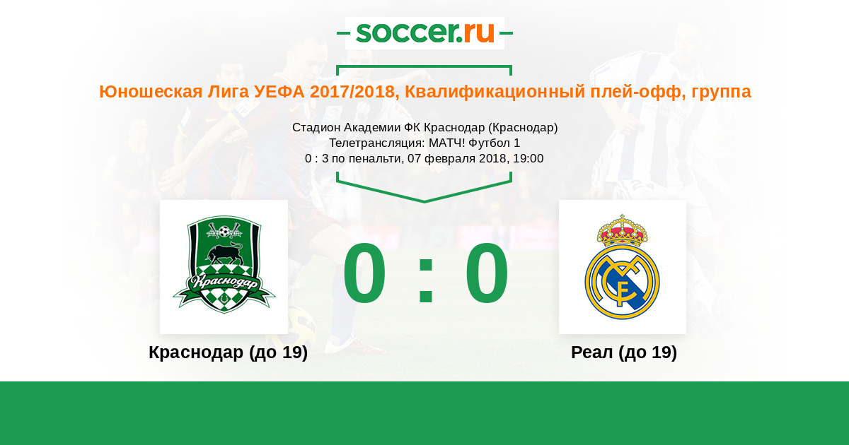 Протокол матча Краснодар (до 19) против Реал (до 19)