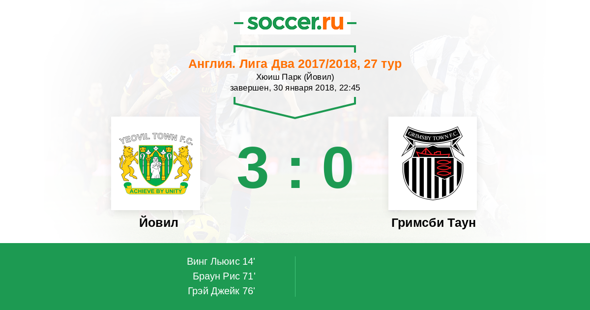 Протокол матча Йовил против Гримсби Таун