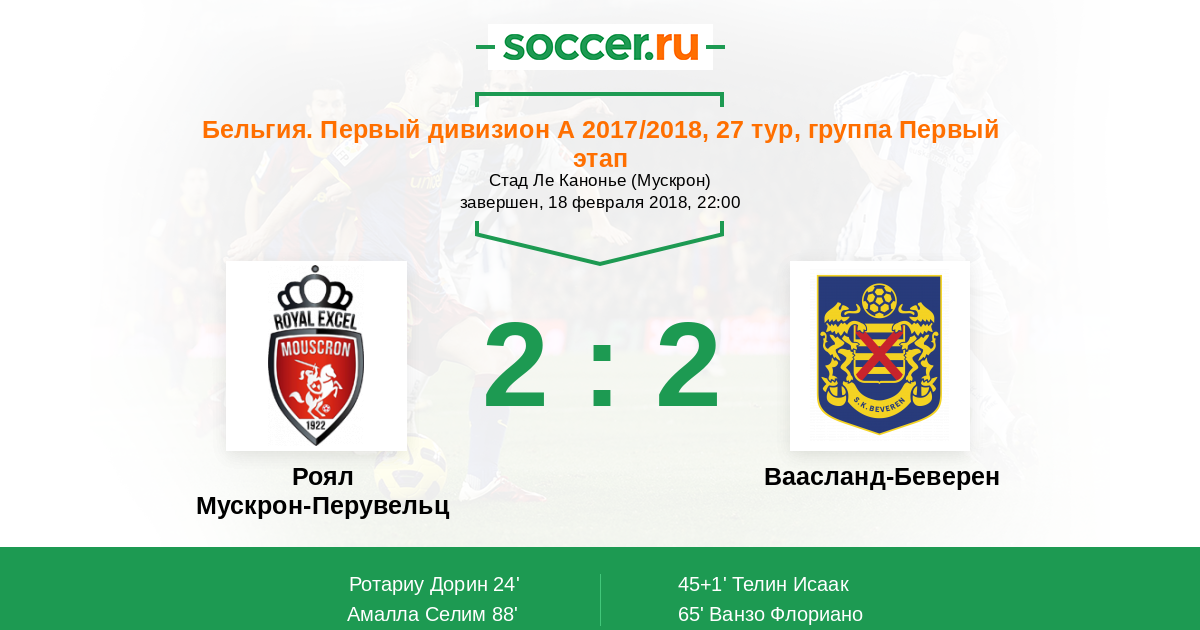Протокол матча Роял Мускрон-Перувельц против Ваасланд-Беверен