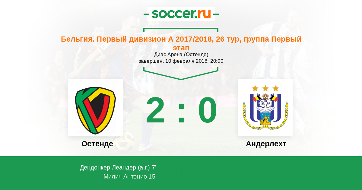 7' (1:0) Автогол Дендонкер Леандер (32)