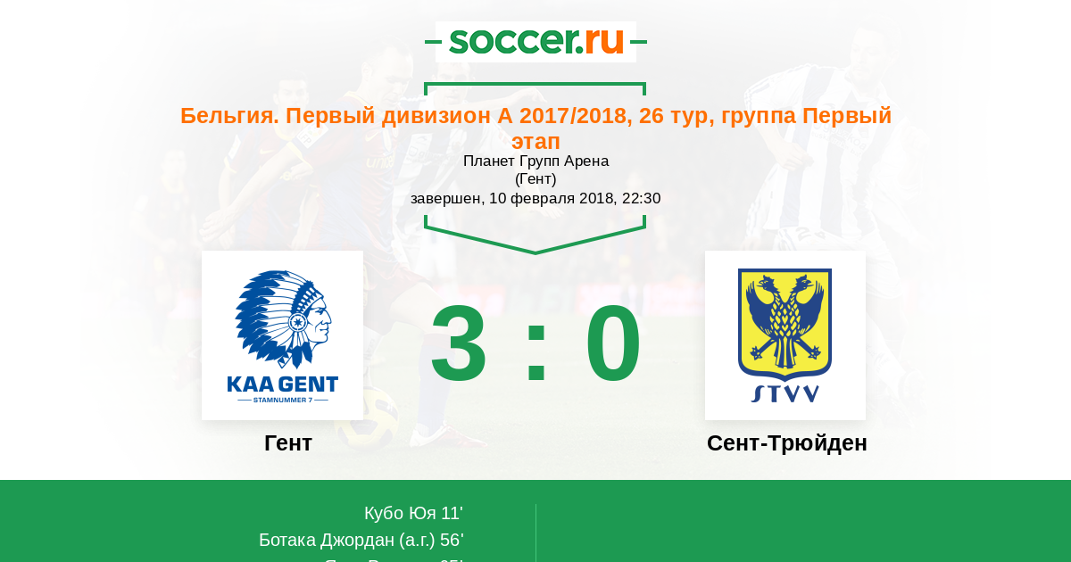 Протокол матча Гент против Сент-Трюйден