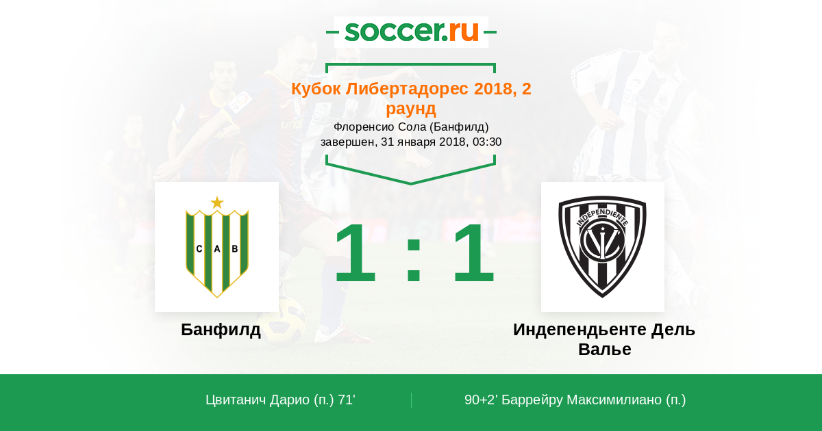 Протокол матча Банфилд против Индепендьенте Дель Валье