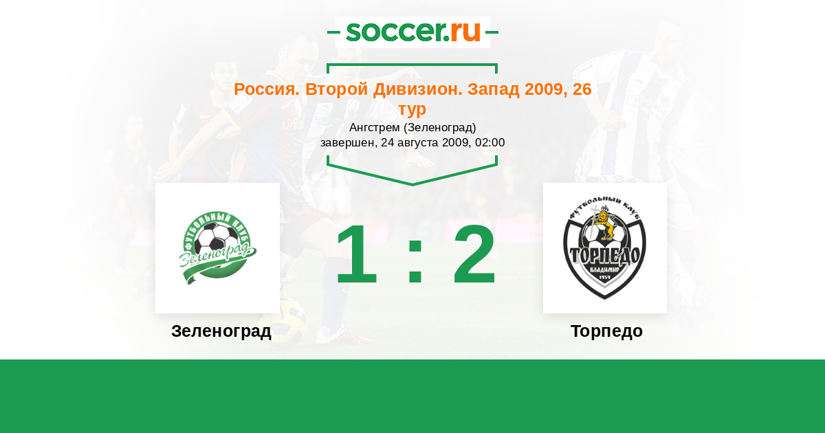 Россия. Вторая лига. Группа 2 17.08.2010 Зеленоград Логотип футбольный клуб Зеленоград (Москва) 0:2 Логотип футбольный клуб Торпедо (Владимир) Торпедо