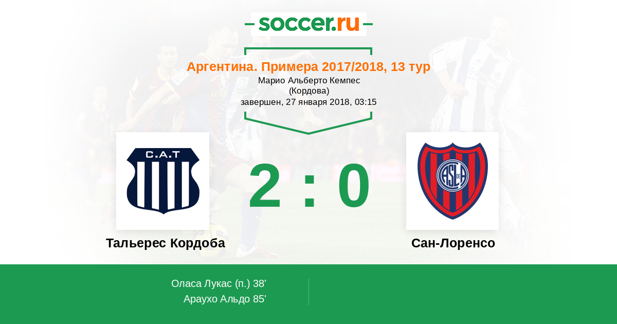 Протокол матча Тальерес Кордоба против Сан-Лоренсо
