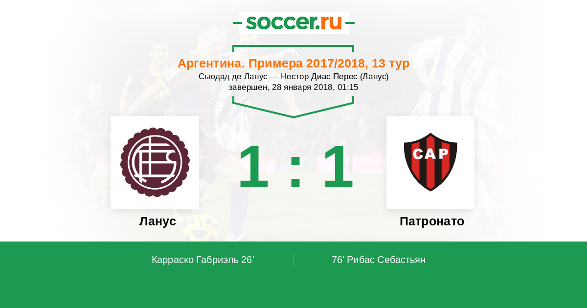 26' (1:0) Карраско Габриэль (27) (Лодико Гастон (16))