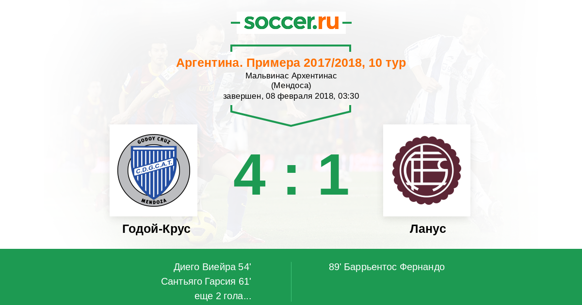 Гол90+3' (4:1) Сантьяго Гарсия (18) (Ленсинас Леандро (34))