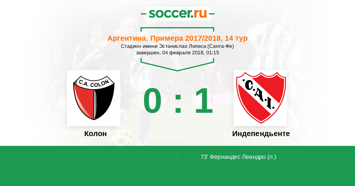 Протокол матча Колон против Индепендьенте