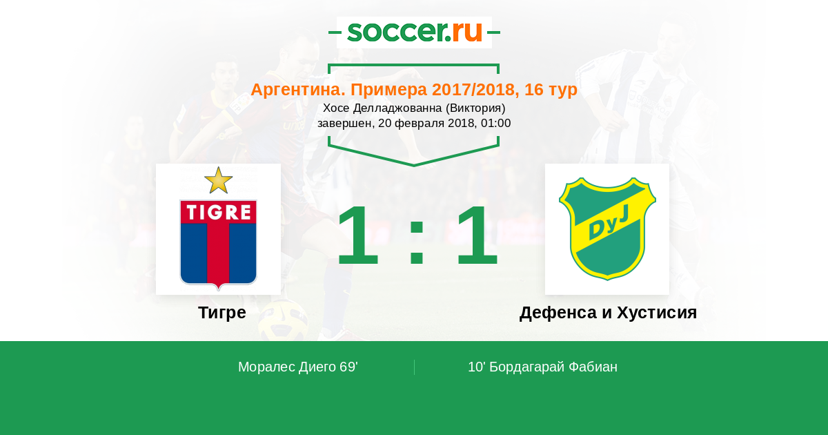 69' (1:1) Моралес Диего (20) (Матиас Перес Гарсия (10))