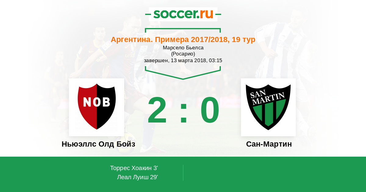 Протокол матча Ньюэллс Олд Бойз против Сан-Мартин