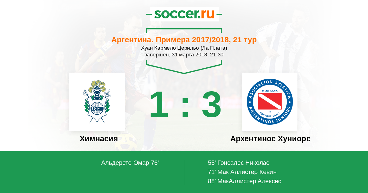 Протокол матча Химнасия против Архентинос Хуниорс