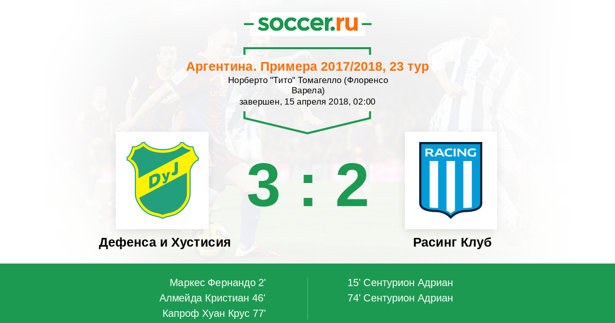 Протокол матча Дефенса и Хустисия против Расинг Клуб
