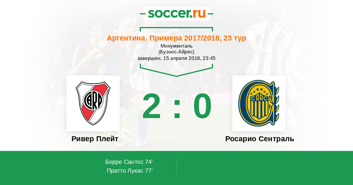 Протокол матча Ривер Плейт против Росарио Сентраль
