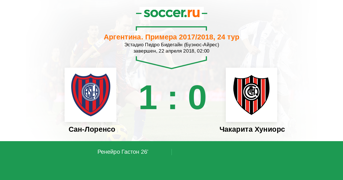 Протокол матча Сан-Лоренсо против Чакарита Хуниорс