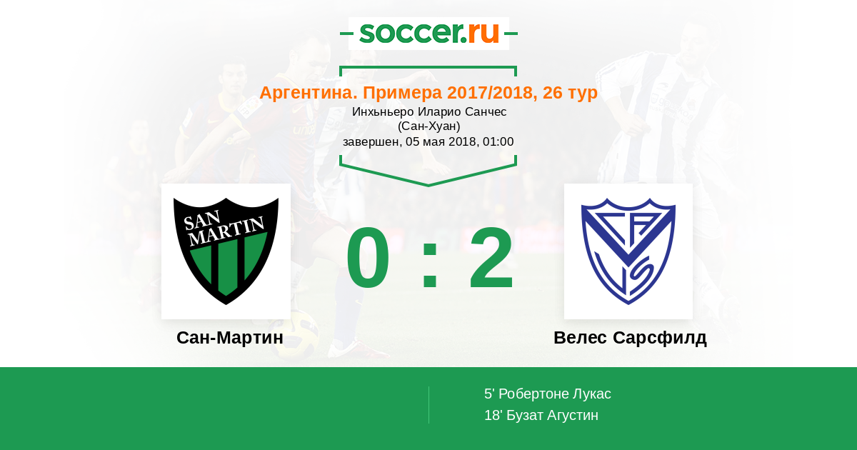 Протокол матча Сан-Мартин против Велес Сарсфилд