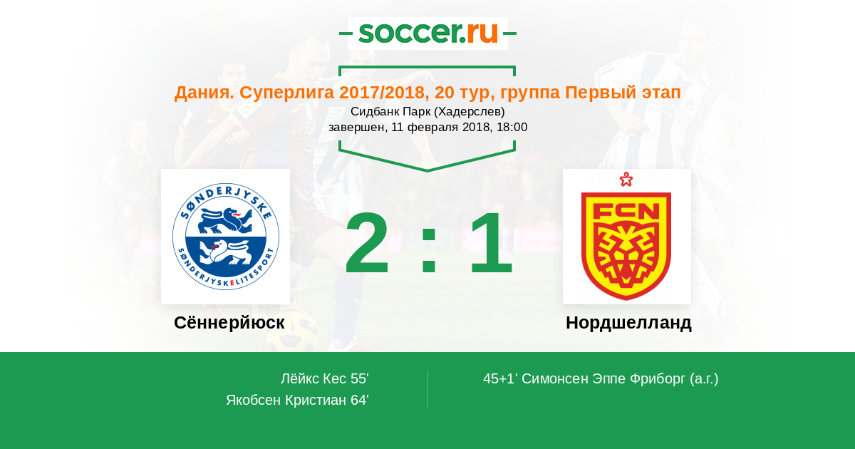 Протокол матча Сённерйюск против Нордшелланд