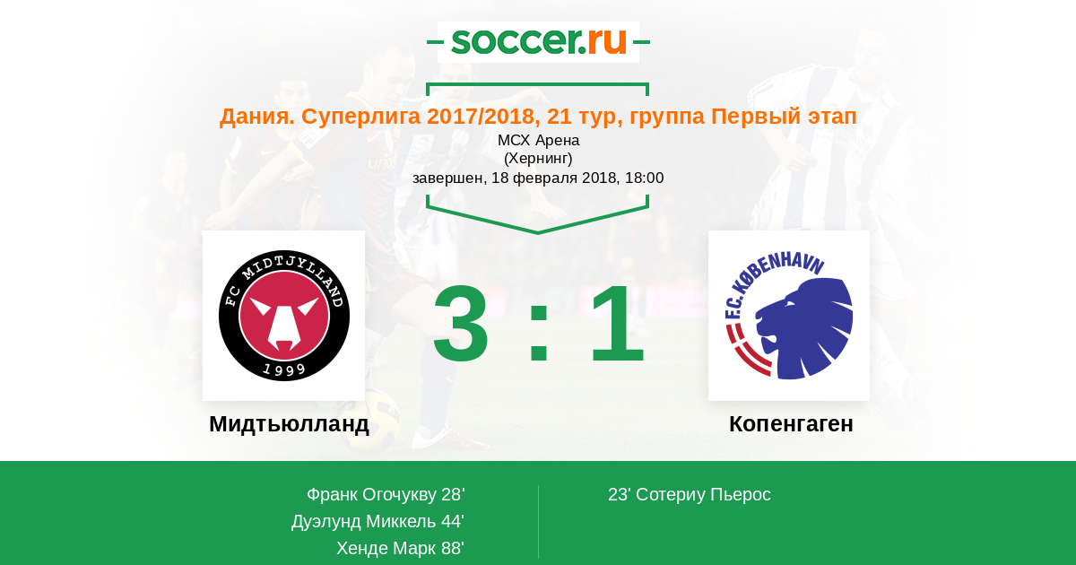 Протокол матча Мидтьюлланд против Копенгаген