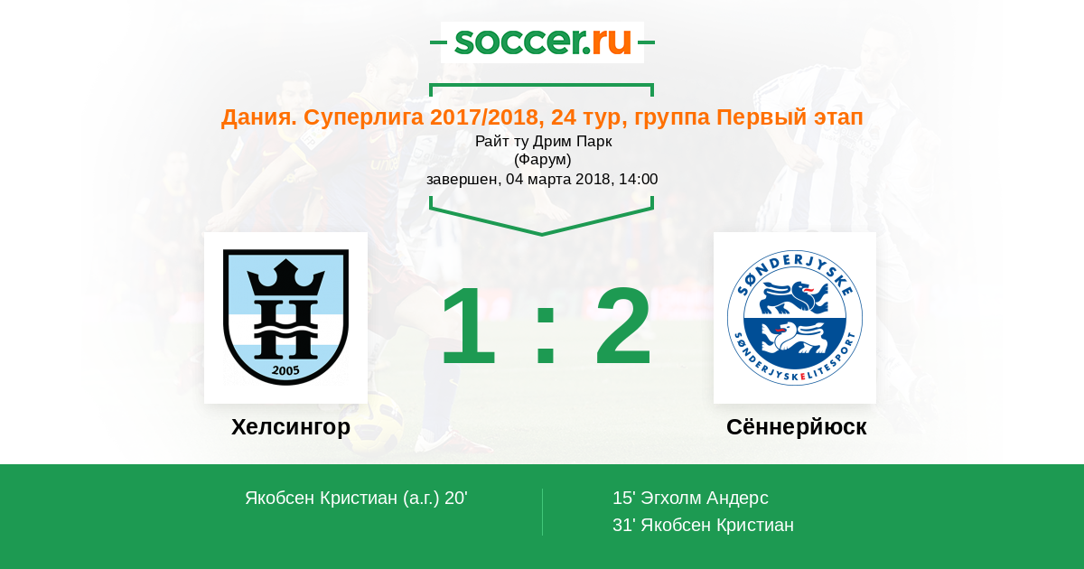 Протокол матча Хелсингор против Сённерйюск