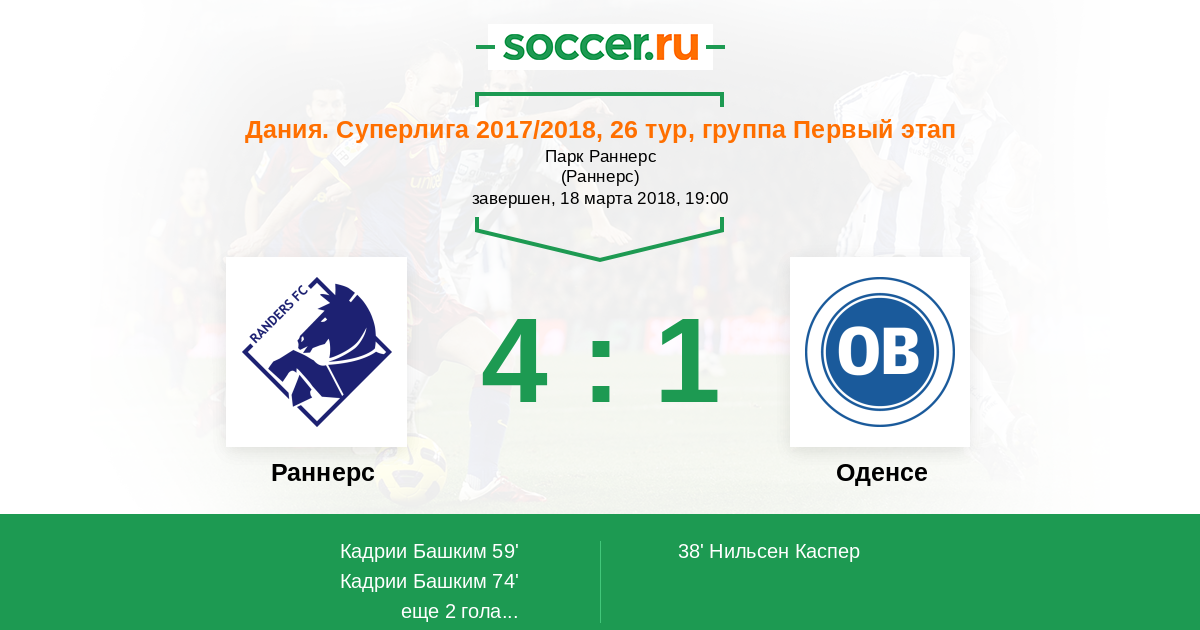 Протокол матча Раннерс против Оденсе
