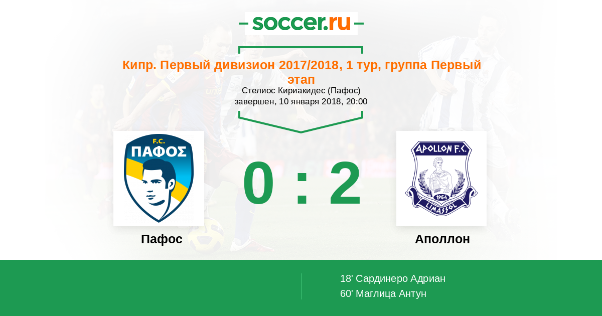 Протокол матча Пафос против Аполлон