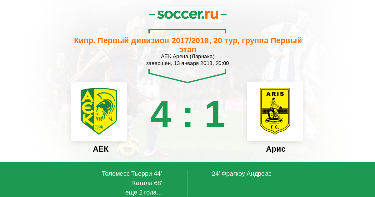 Протокол матча АЕК против Арис