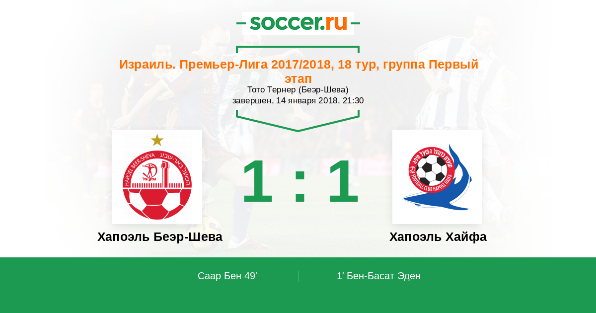 Протокол матча Хапоэль Беэр-Шева против Хапоэль Хайфа