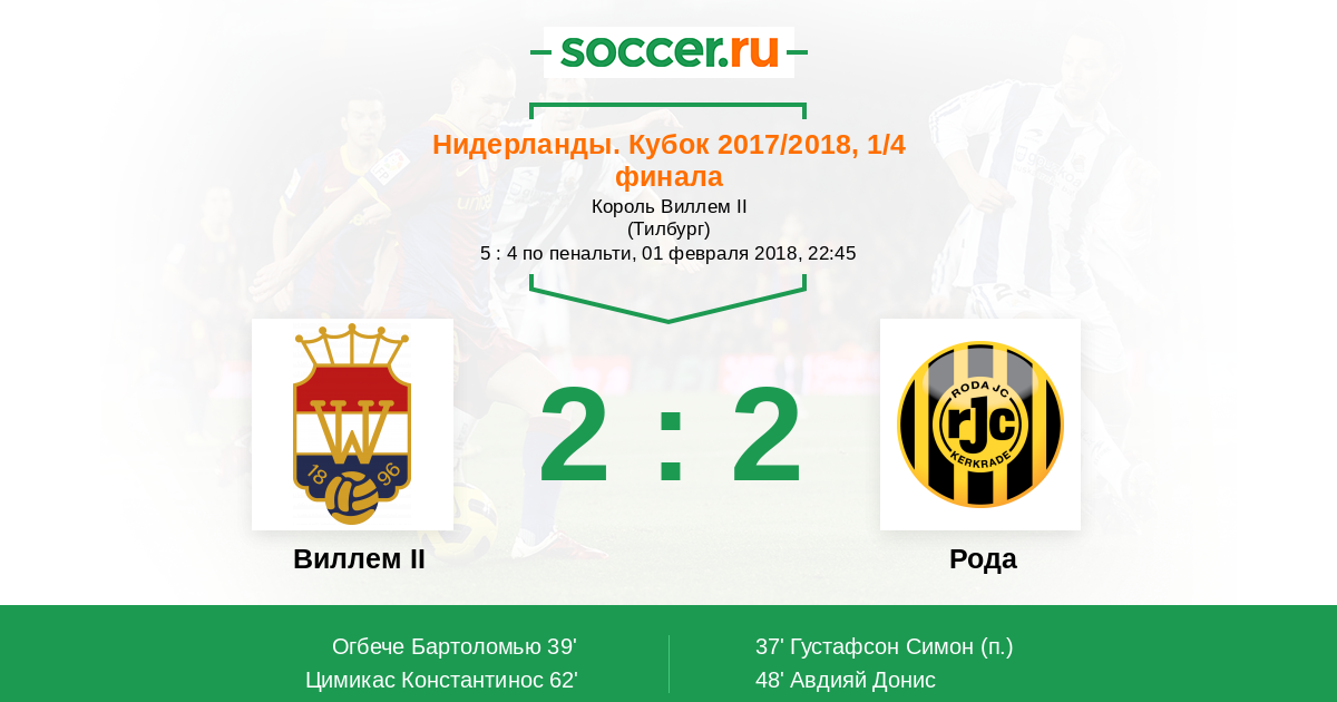 Протокол матча Виллем II против Рода