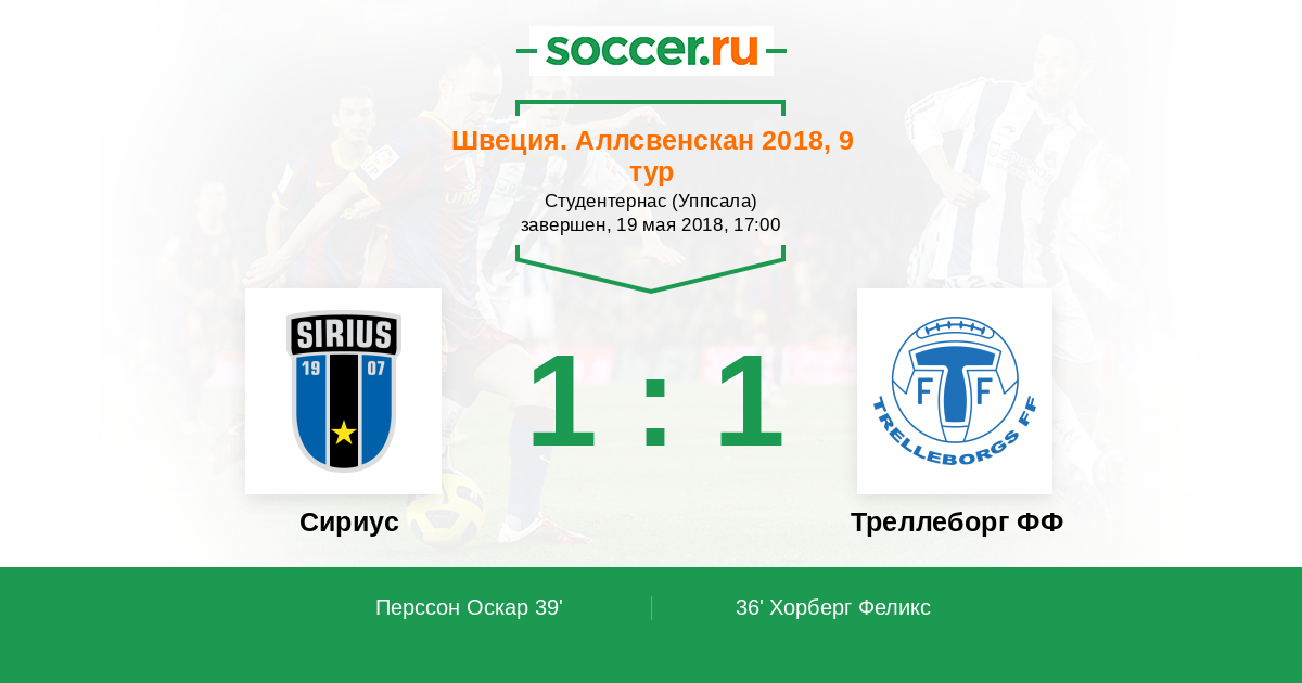 36' (0:1) Хорберг Феликс (20) (Брорссон Фредди (23))