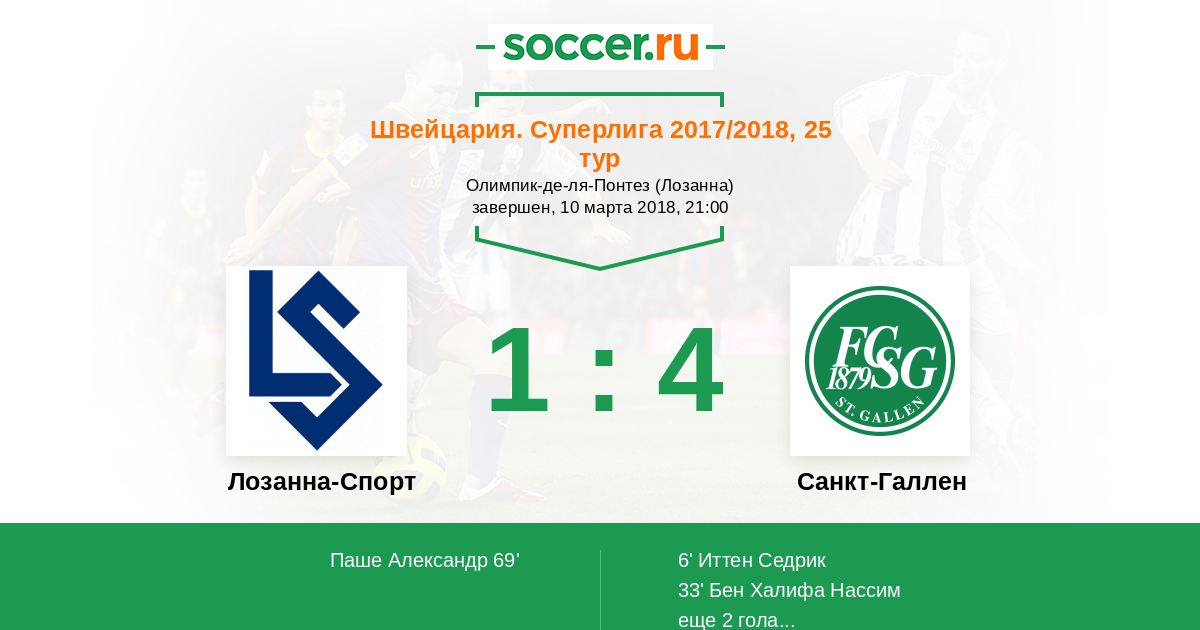 Протокол матча Лозанна-Спорт против Санкт-Галлен