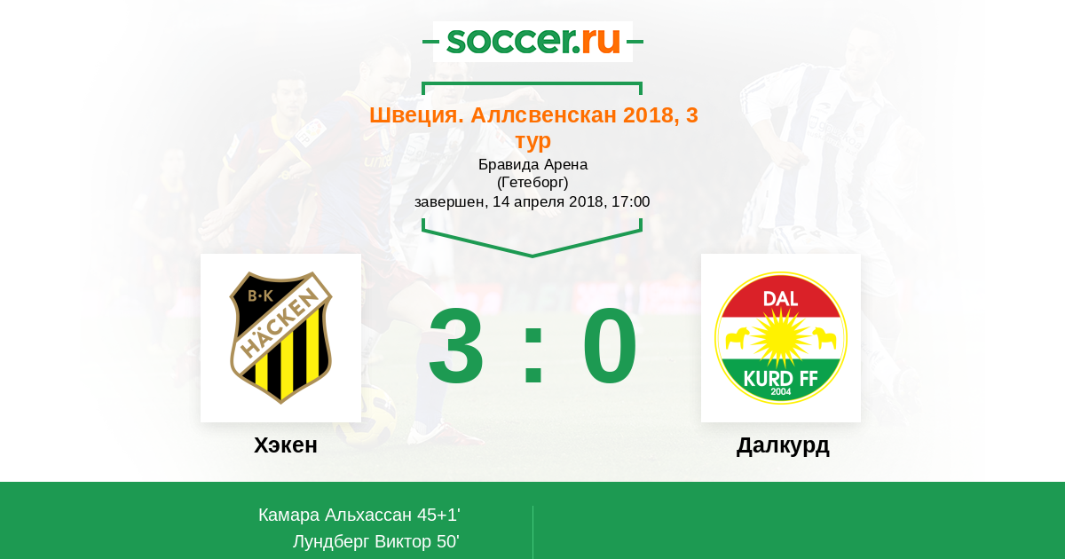 45+1' (1:0) Камара Альхассан (9) (Лундберг Виктор (23))