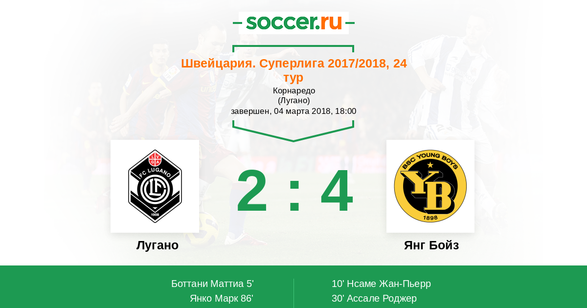 Протокол матча Лугано против Янг Бойз