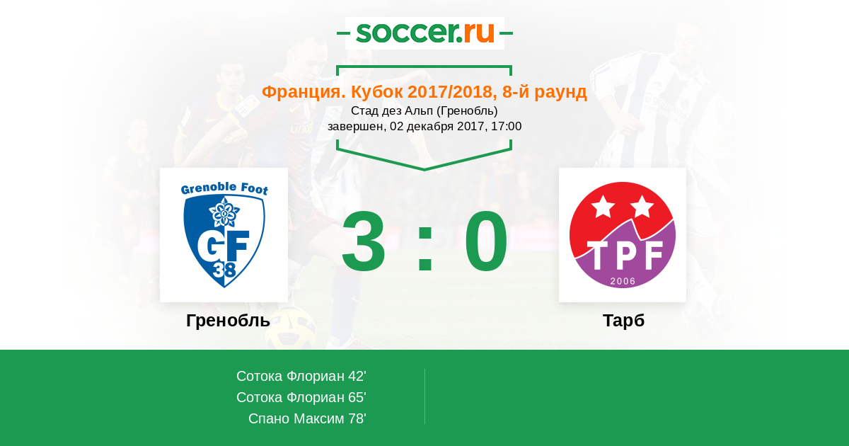 Протокол матча Гренобль против Тарб