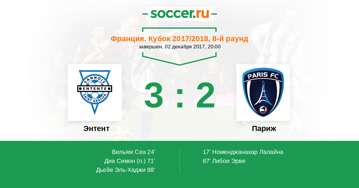 Протокол матча Энтент против Париж