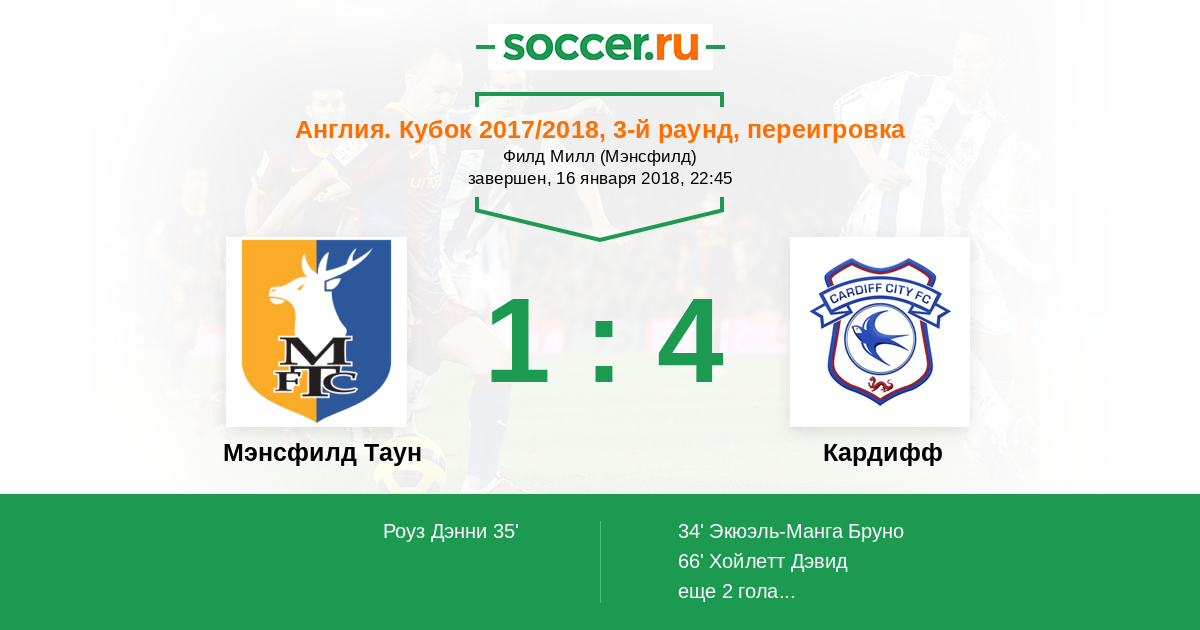Протокол матча Мэнсфилд Таун против Кардифф
